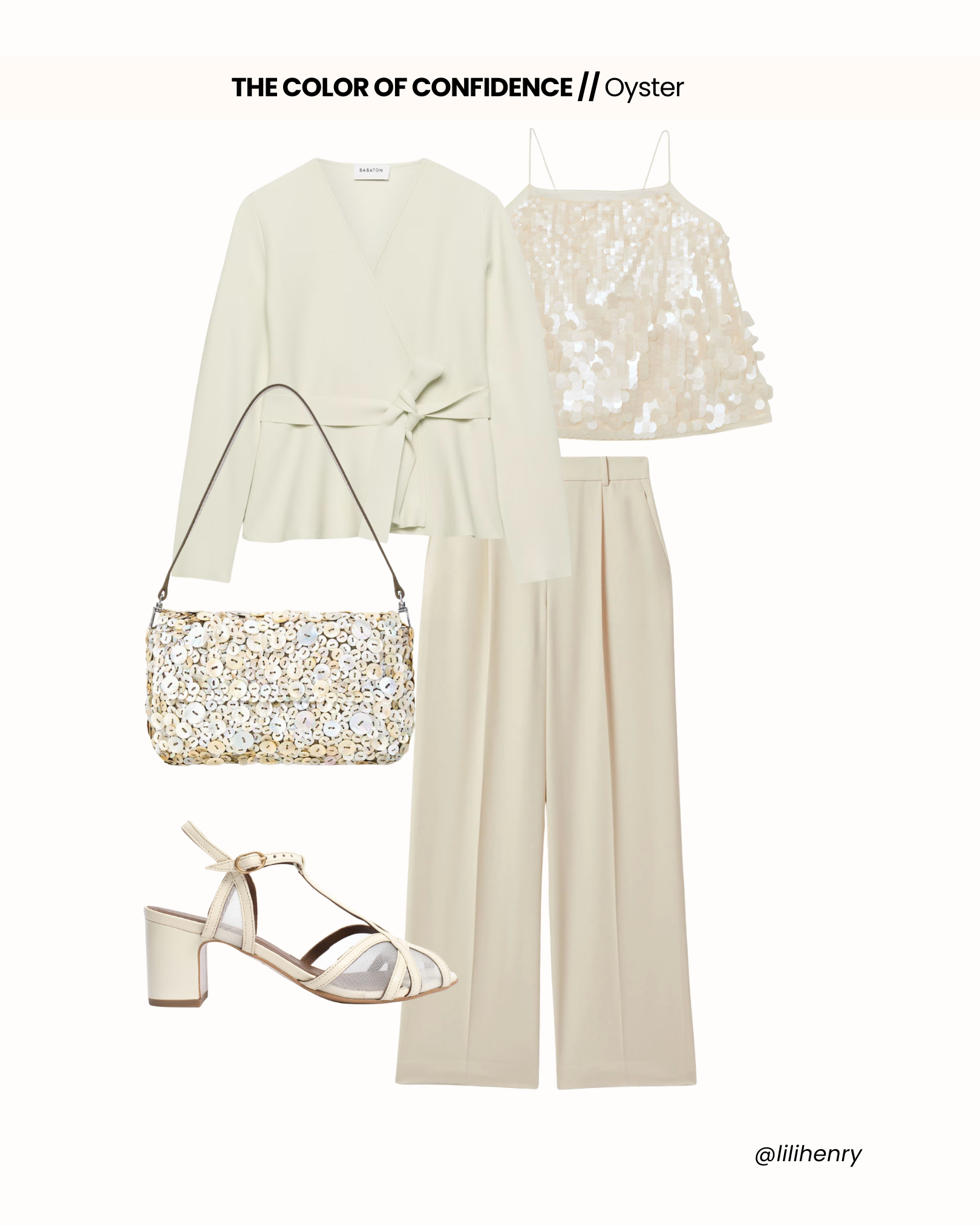 While oyster mostly shines in silky blouses and satiny camis, oyster tones can even make knits shine. The color is perfect for highlighting gold and silver jewelry, so style with a pendant necklace and drop earrings.