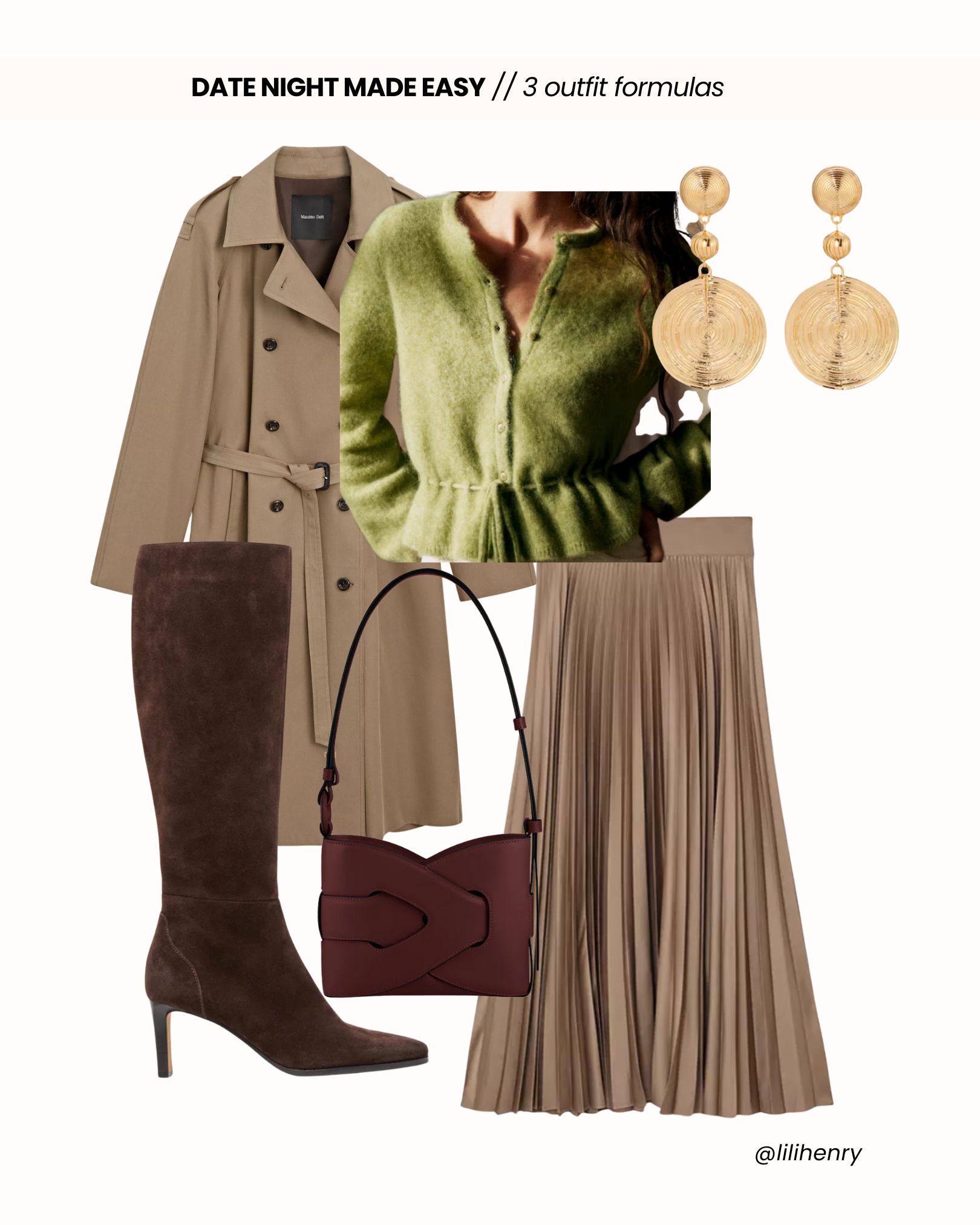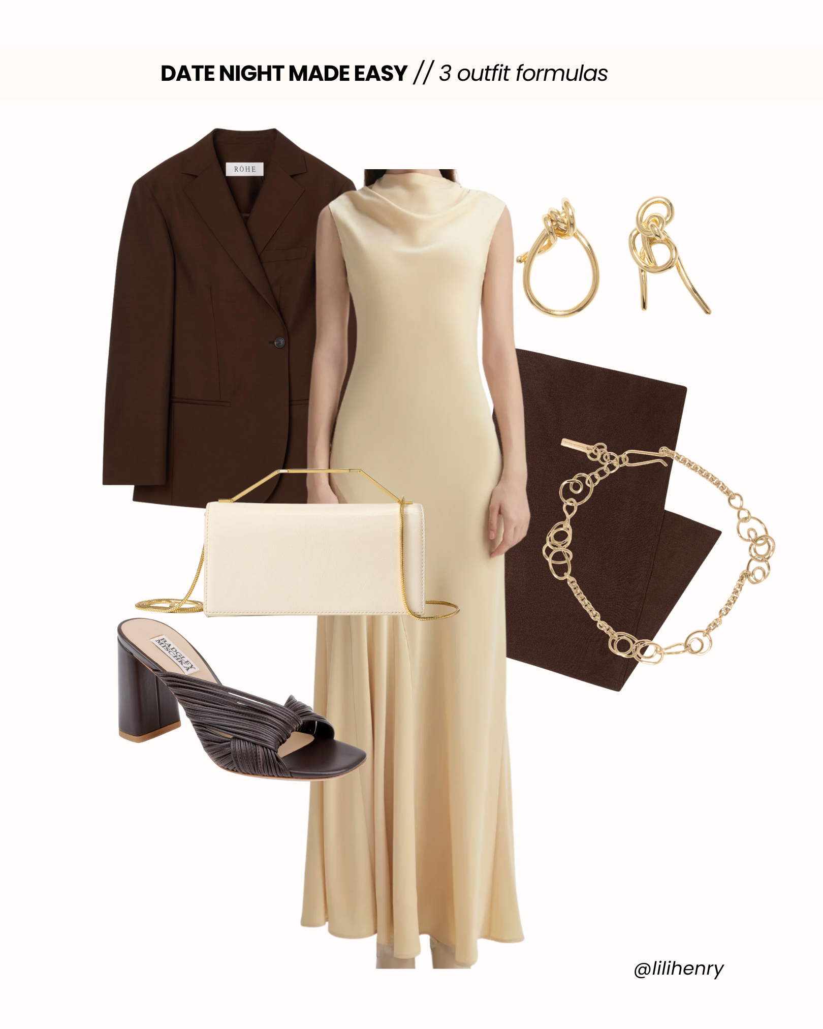 Date-night dressing doesn’t have to be stressful. The key is having reliable outfit formulas that you can come back to again and again. I’m sure you have many of these pieces at home, try some of these on and remember to take a picture so you remember for next time. And if you’re missing anything, well we’ve got a few options linked here and in our Subtle Seduction Edit. With these formulas, you can create multiple outfits from just a few pieces, making date-night styling easy, fun, and totally stress-free!